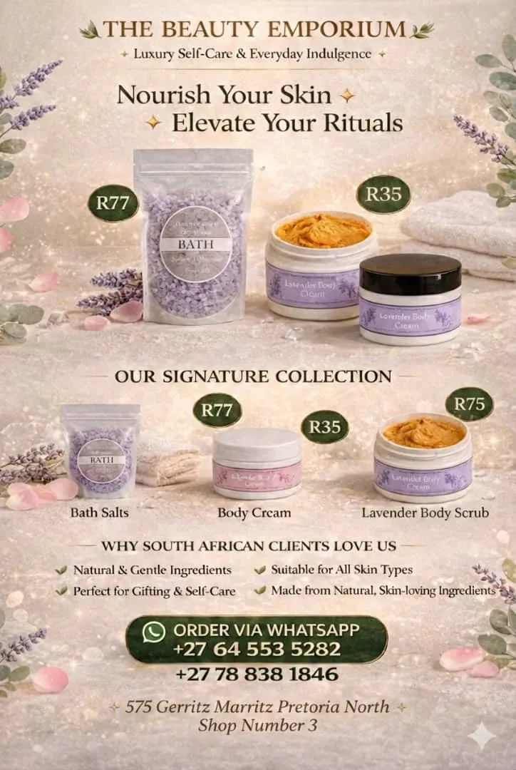 575 gerritz marritz,shop number 3,Pretoria north,Dawson center,Pretoria north,South Africa +27645535282 thebeautyemporiumandspa@gmail.com